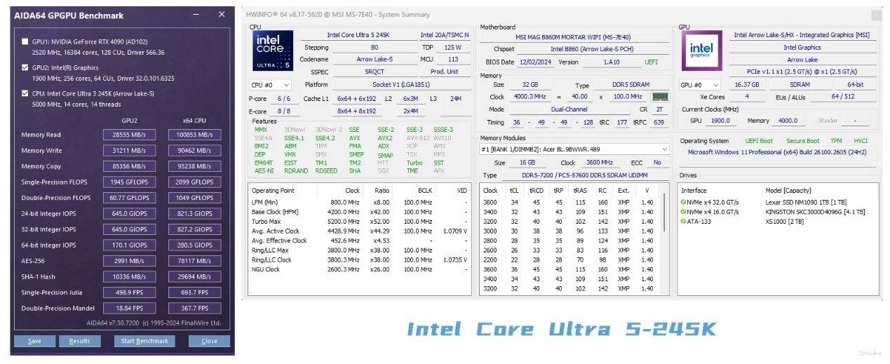 作为桌面级处理器中划时代的产品,英特尔酷睿Ultra 200S系列处理器核心代号:Arrow Lake-S,光刻采用先进的台积电N3B制造工艺,更有着创新的分离式模块设计,其计算模块中性能核心(P核)与能效核心(E核)均得到了全面的提升。甚至这一代的酷睿Ultra 200S系列处理器更是内置了全新的Xes核心显卡与3rd Gen NPU(lntel第3代NPU单元)。因此酷睿Ultra 200S系列处理器的综合能力得到了大幅度的提升,其功耗与温度控制方面也有着出色的表现。