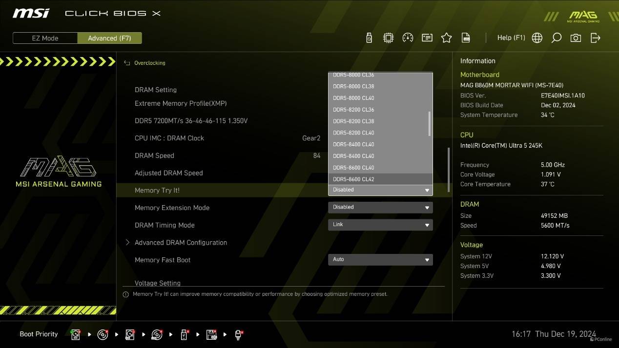 如果你是小白玩家,对各种超频参数不了解,但又想要超频的性能提升,那微星还提供了Memory Try it功能,可以轻松将内存超频至8000+乃至9000+的超高频率,一键提升内存性能,上手简单,操作方便。