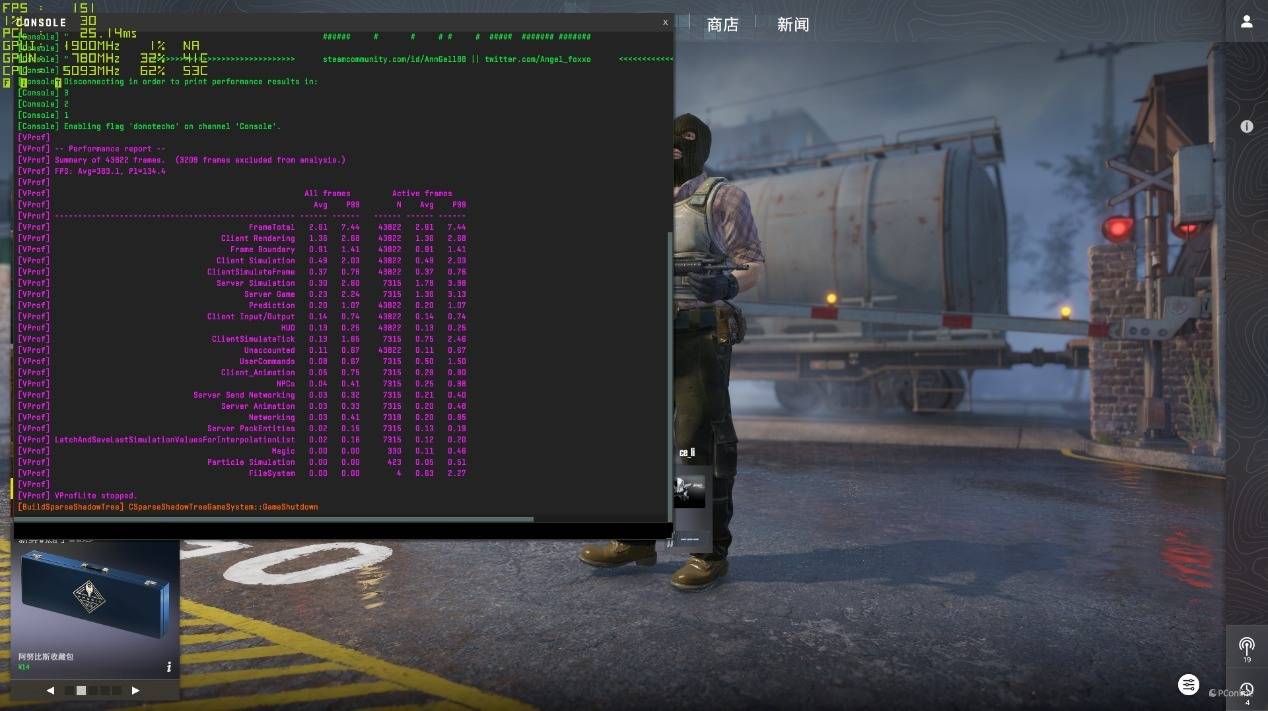先看基础网游的表现,实测《CSGO2》1080P最高画质下,酷睿Ultra 5-245K的平均帧为386 FPS,1%Low也能够接近144 FPS。