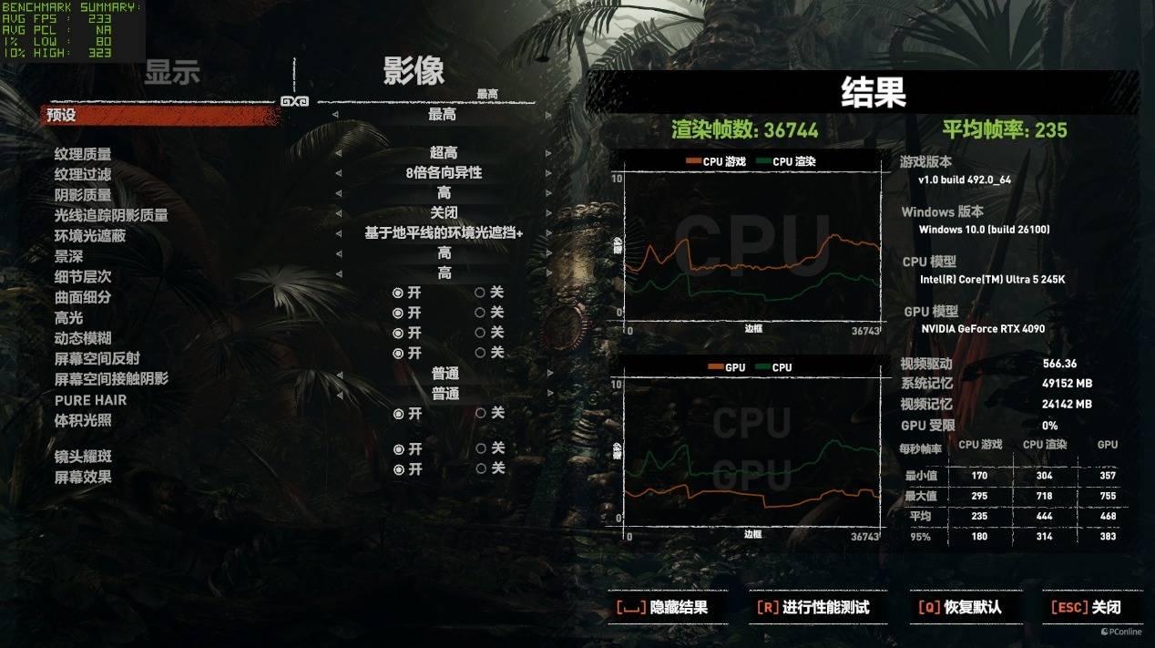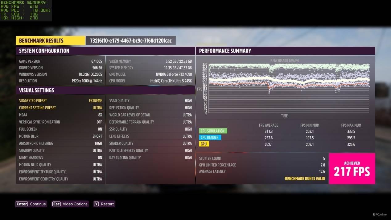 在优化比较好的《古墓丽影:暗影》以及《极限竞速:地平线5》里,即使是1080P最高画质,这套平台也能轻松飙上200+ FPS,表现非常惊人。
