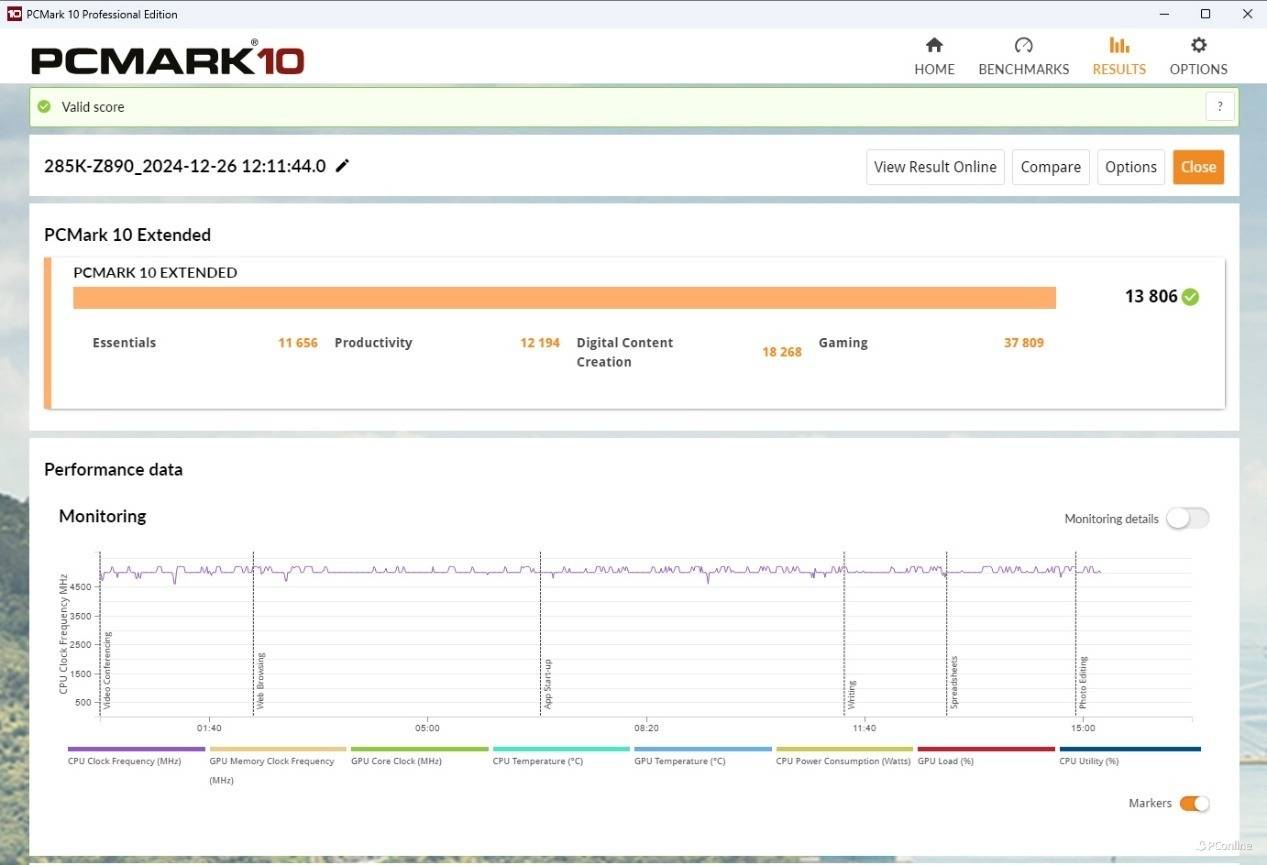 从实际成绩上看,这套平台的表现还是相当优越的,总分有13806,其中常用基本功能11656分,生产力12194分,数位内容创作18268分,游戏37809分。基本可以称得上是创作游戏两兼顾的高性价比主机了,最近想升级硬件的真的可以考虑一下,酷睿Ultra 5-245K加上微星B860M迫击炮主板这套配置,可以很好地胜任日常娱乐及办公体验,同时还能兼顾出色的创意创作工作。