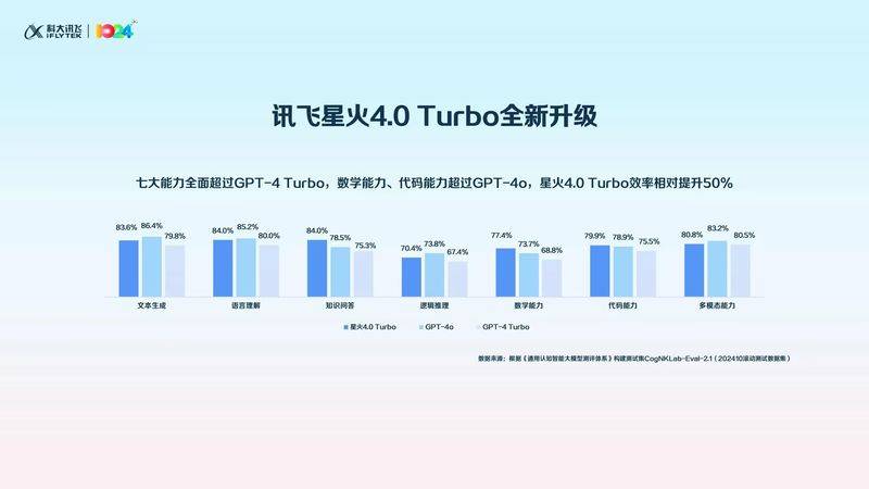 — 讯飞星火4.0 Turbo获七大升级 号称数学能力超GPT-4o —