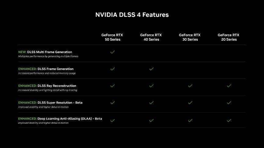 不过虽然DLSS 4的多帧生成功能是RTX 50系显卡的独占功能,但新的Transformer模型将会逐步下放至DLSS 3、DLSS 2等,将适用于所有GeForce RTX显卡。