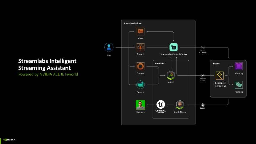 在游戏直播领域,RTX NIM同样发挥着重要作用。新推出的 Streamlabs ligent Streaming Assistant 可以为直播主提供智能的辅助功能,如同伴一样与直播主进行互动,对游戏内容做出反应,或通过自然语言下达命令。
