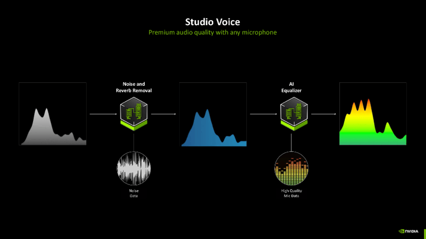 此外,NVIDIA Broadcast 直播软件也获得了功能更新,其 Studio Voice 功能可以通过 AI 分析去除背景噪音,还原语音的完整频率响应范围,为直播主提供清晰、自然的语音表现。Virtual Key Light 功能则能够实时分析直播主的面部光线,自动调整打光效果,解决光线不均匀、暗沉等问题,使直播主在镜头前始终保持最佳形象。