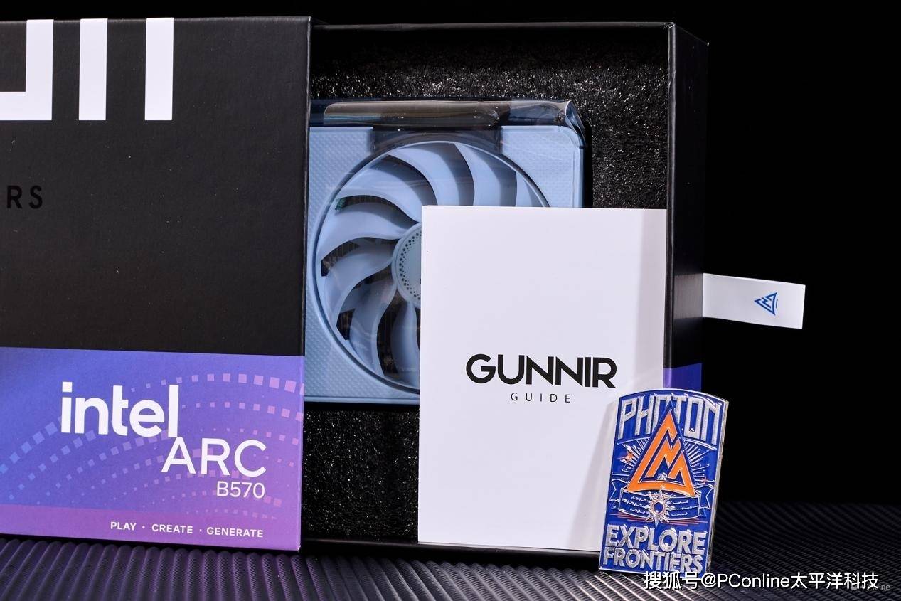 打开包装,GUNNIR Intel Arc B570 Photon 10G W显卡的纯白配色映入眼帘,给人以简约而不失高雅的视觉享受。