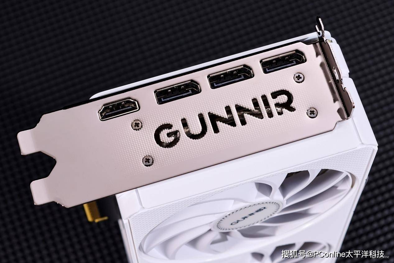 在后置的I/O挡板设计上,GUNNIR Intel Arc B570 Photon 10G W显卡与Arc B580保持一致,配备了三个DP2.1接口和一个HDMI 2.1a接口。其中,从顶部数起第二个DP2.1接口被设定为主输出接口。