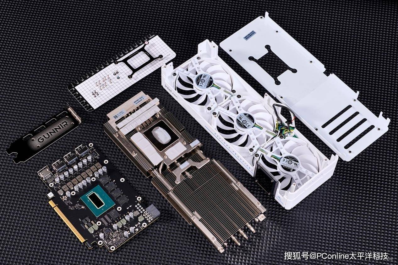 GUNNIR Intel Arc B570 Photon 10G W显卡拆解图,基本上每个部件都可以进行拆卸。