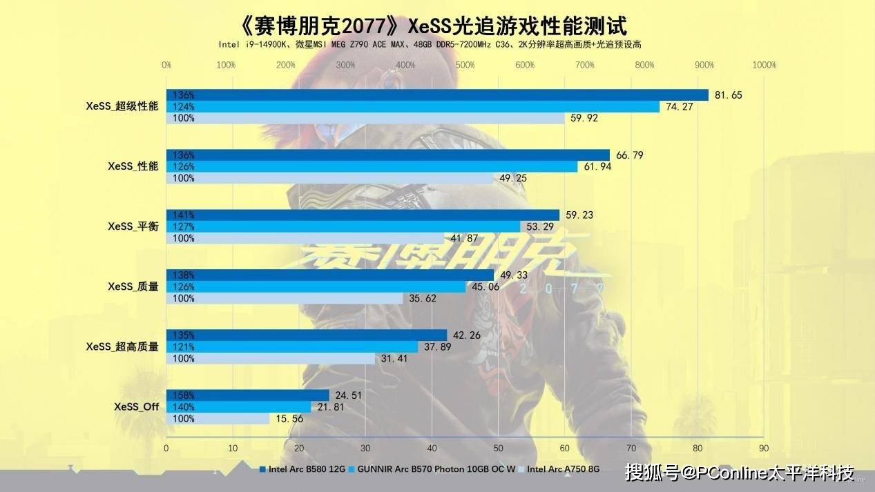 面对被誉为显卡杀手的《赛博朋克2077》,GUNNIR Intel Arc B570 Photon 10G W显卡借助XeSS技术,让玩家得以体验到夜之城的极致流畅。与上一代次旗舰Intel Arc A750相比,即便在XeSS的超级性能模式下,也难以达到60 FPS的流畅体验。然而,GUNNIR Intel Arc B570 Photon 10G W显卡在XeSS技术的加持下,性能有了显著提升,能够稳定在大约75 FPS,整体表现令人满意。