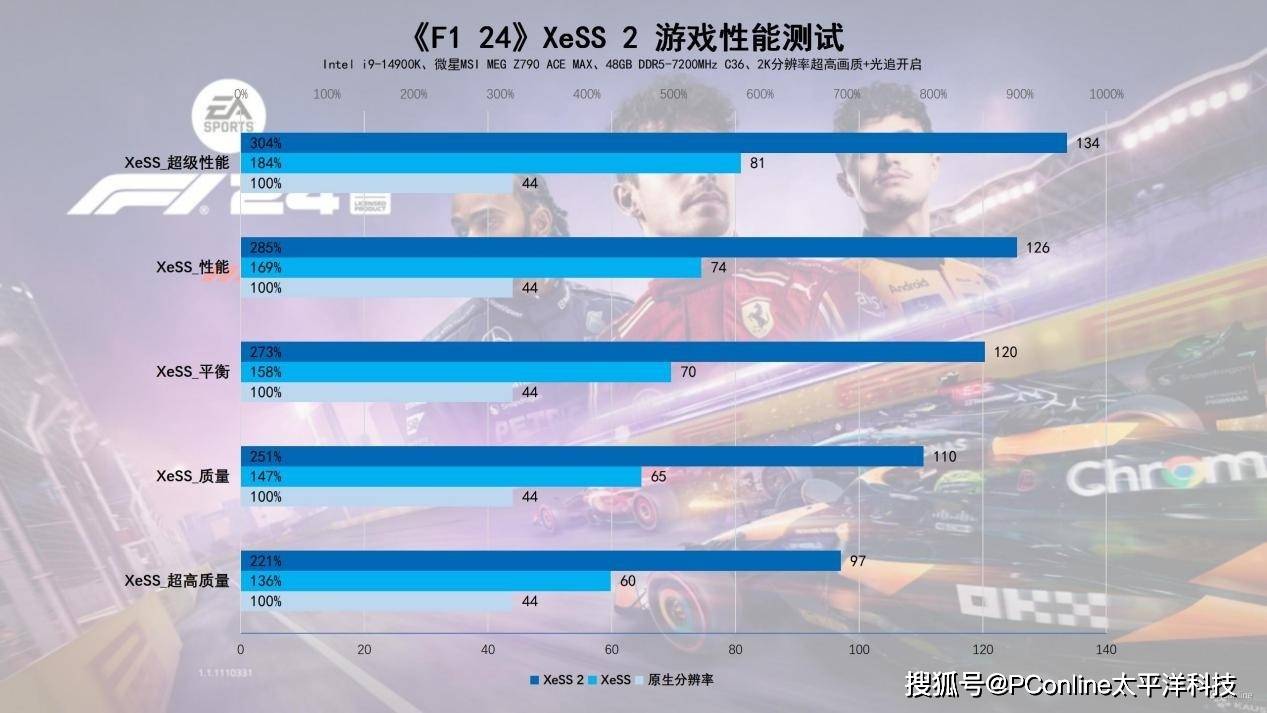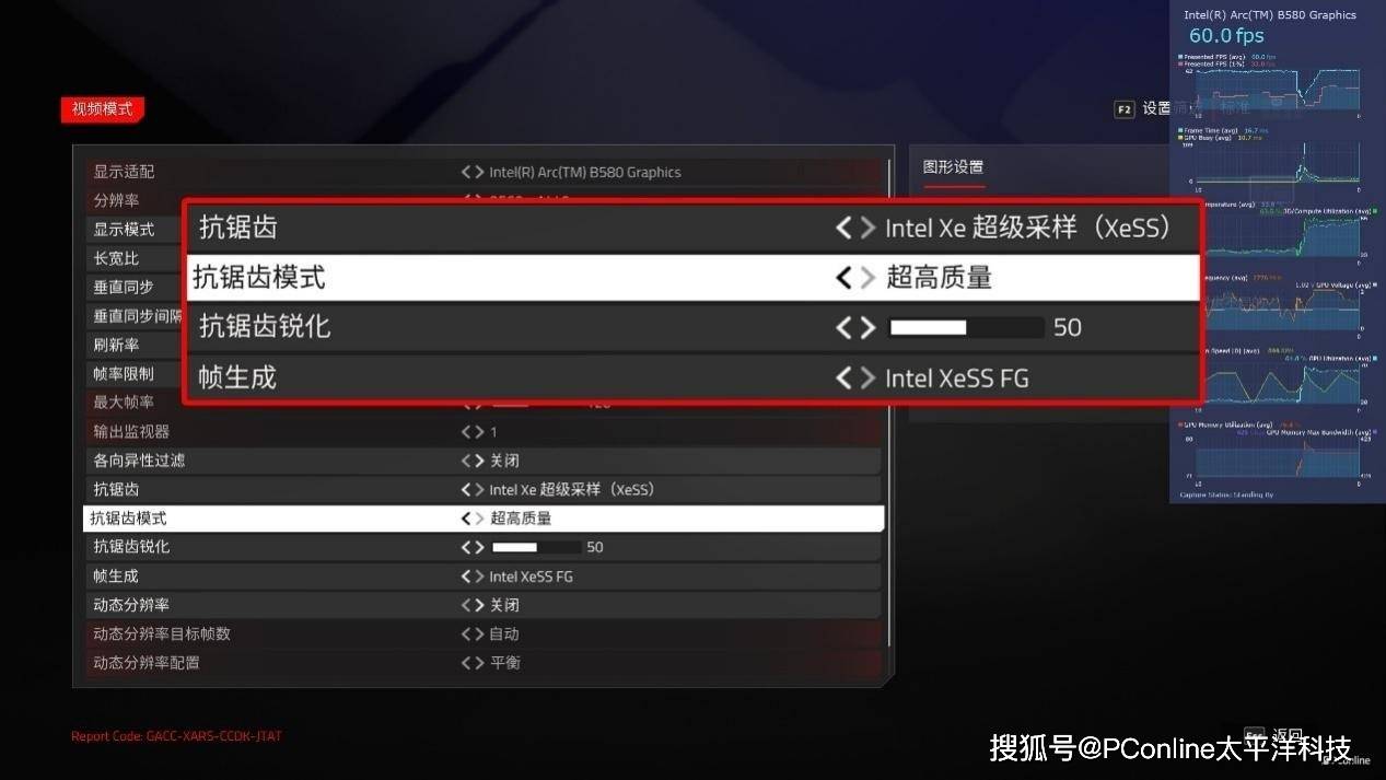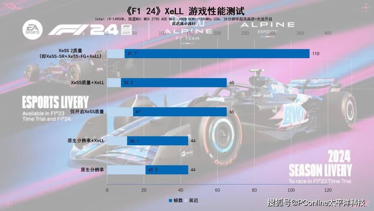 目前支持XeSS2的游戏仅有《F1 24》,游戏在更新完之后就会在帧生成选项中,新增一个Intel XeSS FG选项,我们直接开启即可。