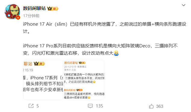 — 极致轻薄的妥协!iPhone 17 Air背板配件曝光,为后置单摄设计 —