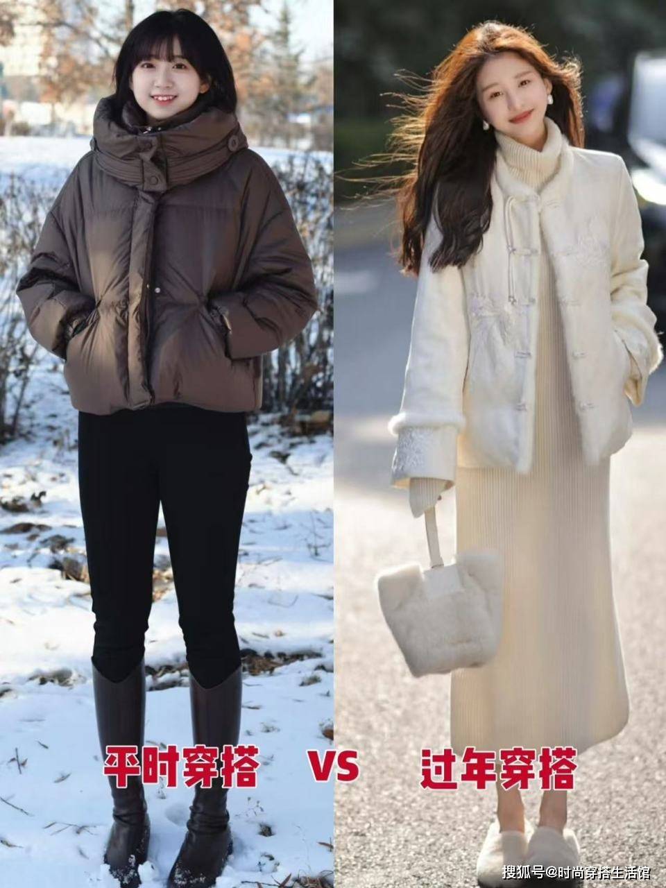 — 过年穿羽绒服时,尽量不要配靴子、打底裤!这样打扮更优雅有气质 —