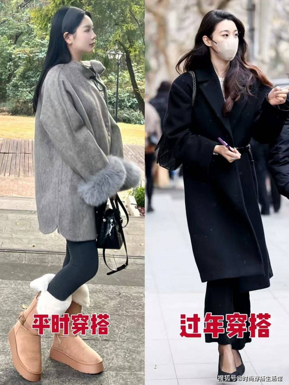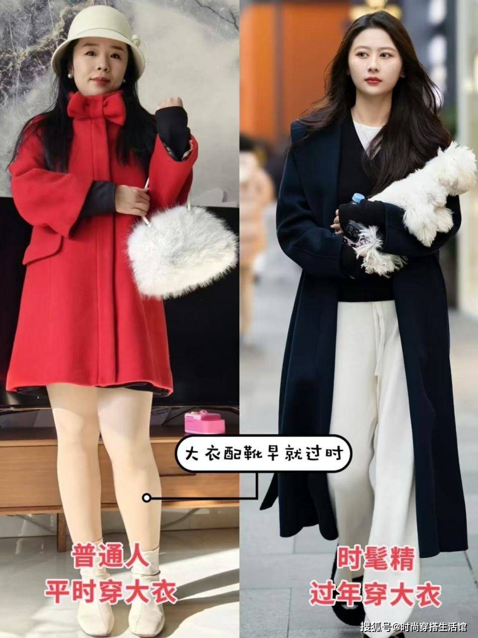 — 过年了“大衣”下面尽量不要搭靴子,瞧上海人这样穿,喜庆又保暖 —