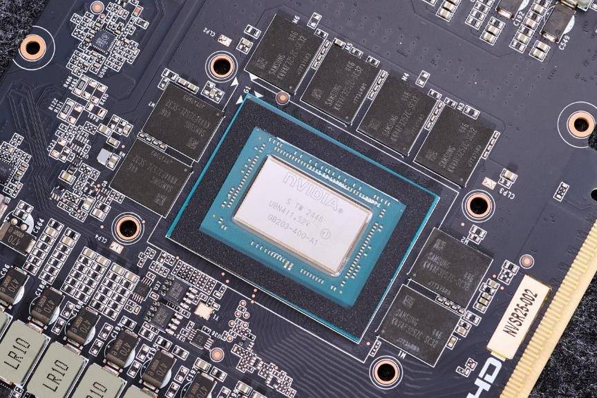 显存芯片来自三星,丝印编号为K4VAF325ZC-SC32,根据官方给出的参数,显存位宽为256bit,显存带宽为960GB/s,这一数据已经媲美RTX 4090了。