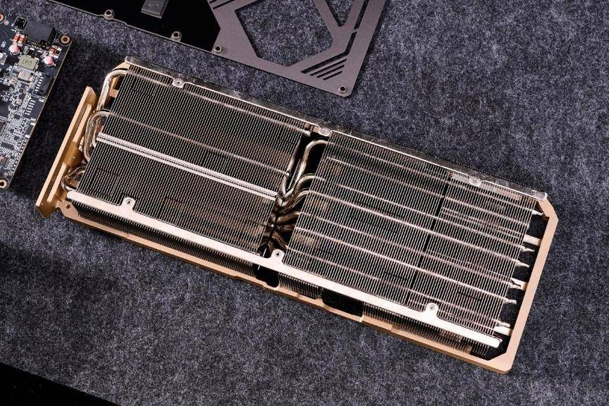 接下来就是这个卡的精华所在,密集散热鳍片阵列不仅增加散热面积,不规则的鳍片犹如工艺品,提升了观感。