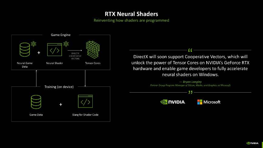 这样改进的好处是,Blackwell架构能够进一步针对神经网络渲染工作进行排序,即把传统的着色工作分配给Shader,而需要动用神经网络渲染的工作负载则可以给到Tensor核心上,两种核心同时运用,效率最高可以提升2倍之多。并且得益于Tensor核心也加入了可编程渲染管线,现在开发者或API也能更好地调用Tensor核心,未来游戏内我们能见到的AI技术势必越来越多。