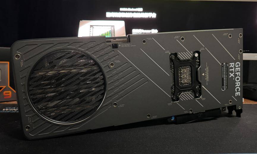在背部设计部分,最显眼的当然是七彩虹iGame RTX 5080 AD OC尾部的环形散热孔设计,这种设计更利于风道流通,进一步提升显卡的散热性能。而且设计者在这部分做了一个隐藏设计,在特定角度我们能看到散热孔上的iGame Logo,只能说在这部分七彩虹的设计是相当用心了。