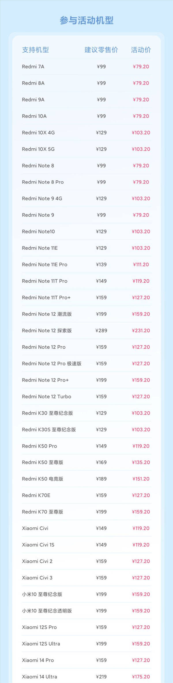 — 小米手机新年电池换新折扣来了,覆盖38款机型,最低79.2元起! —