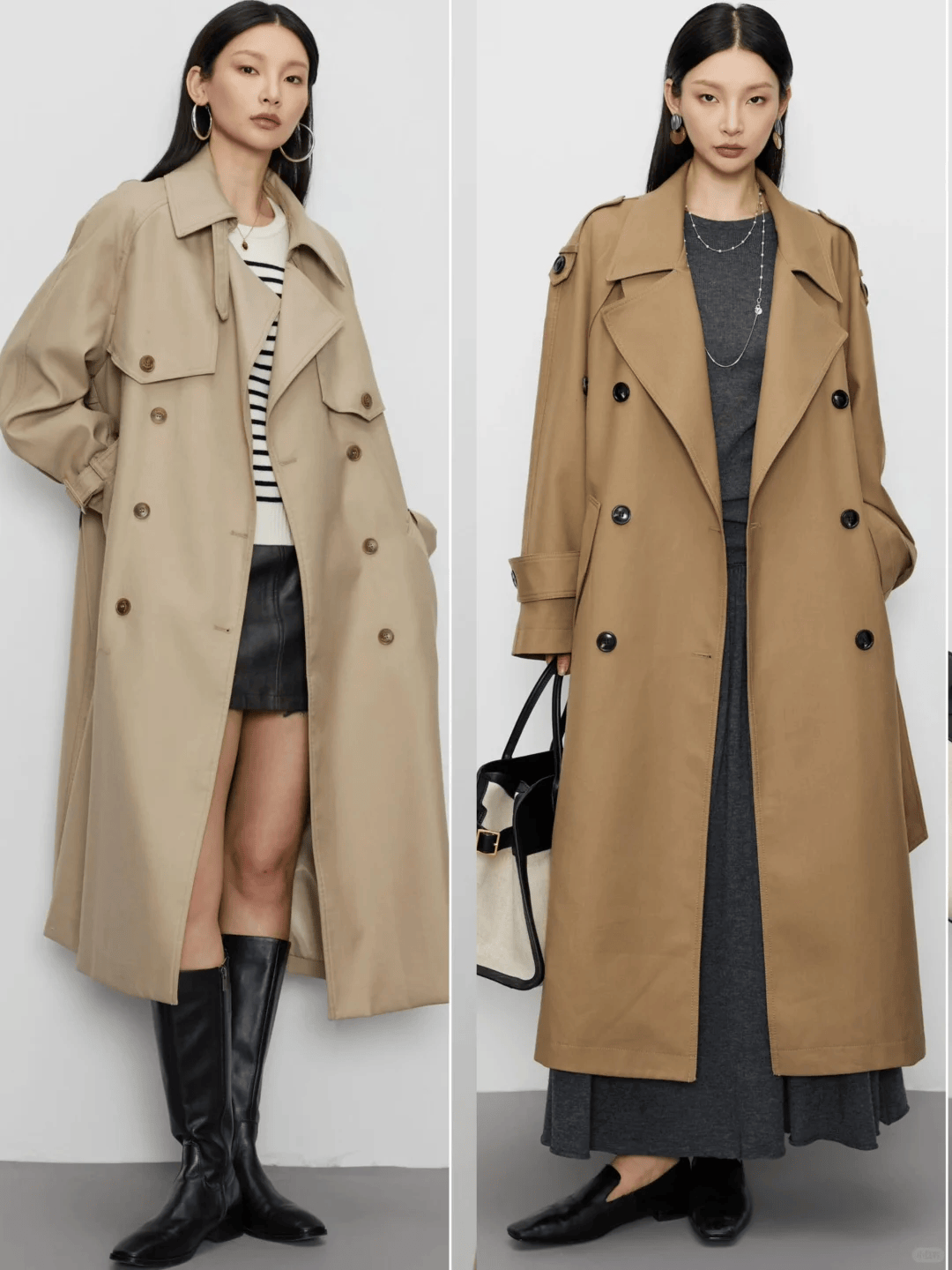 — 开春外套怎么选?风衣必须是首选,“长风衣+裙装”,轻松变女神 —
