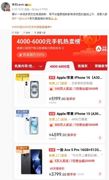 — 一加手机春节销量大爆发,一加 Ace 5 Pro销量增幅夺冠! —