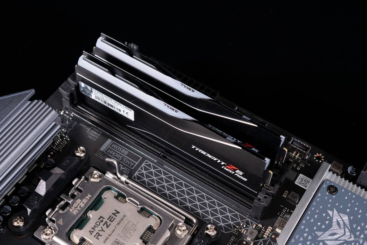 内存我们使用的是来自芝奇G.SKILL的Trident Z5 Neo焰锋戟RGB DDR5-6000 C30 16G×2套条。当然,如果你想冲击更高的频率,蓝宝石Sapphire NiTRO+ 氮动 B850M WIFI主板最高可以支持8000+MT/s的内存超频频率。