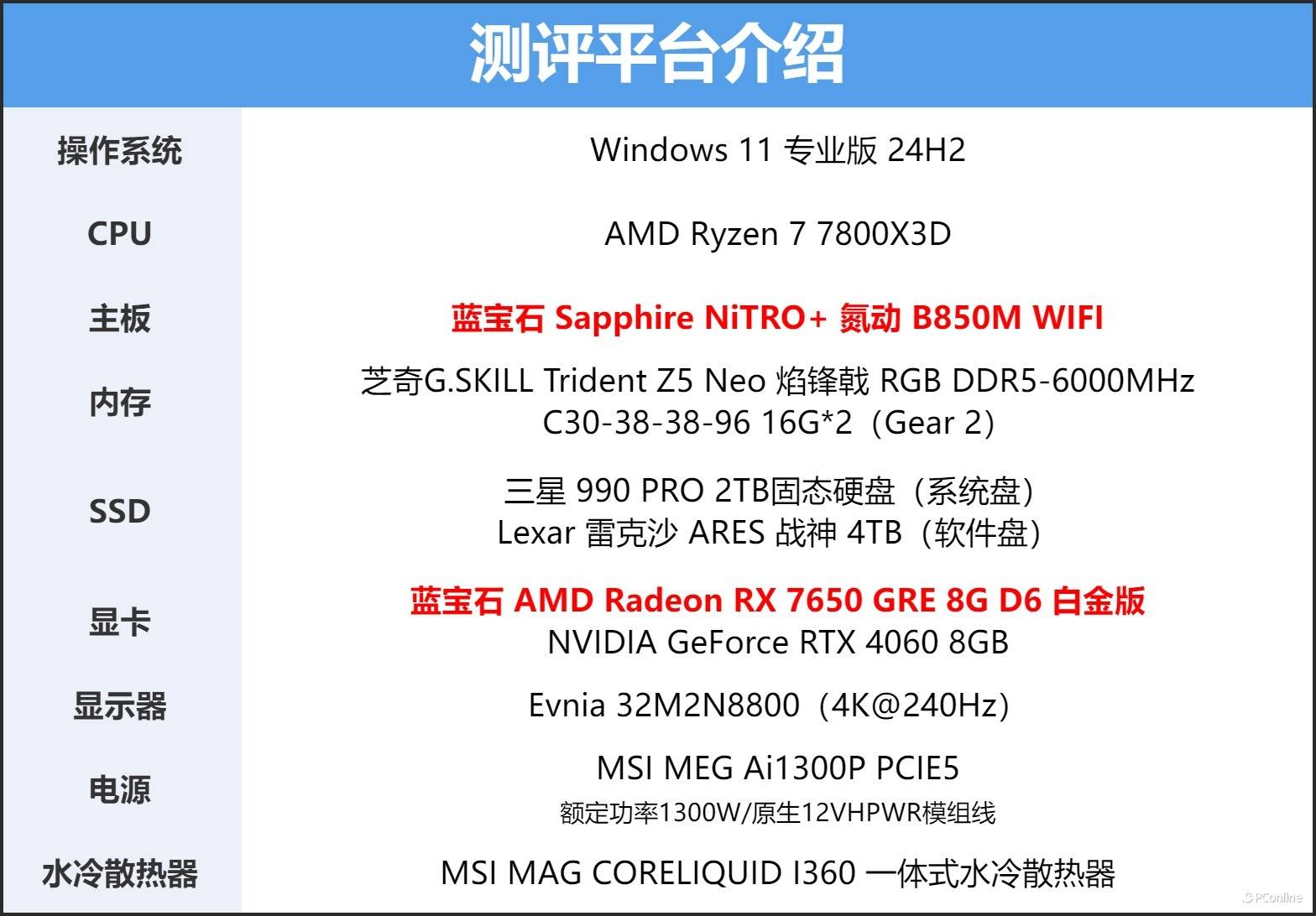 不得不说,AMD每次推出的中国特供版还是非常惊喜的,这次推出的蓝宝石AMD Radeon RX 7650 GRE 8G D6白金版也不例外。不仅用上了最新的RDNA 3架构,性能表现也异常出色。实测下来,在大分部的游戏面前蓝宝石RX 6750 GRE 10G D6白金版都能给到玩家一个相当不错的游戏体验。特别是在不少2K分辨率的游戏中,性能全面领先RTX 4060,确实很好的贴合了主流玩家的需求。