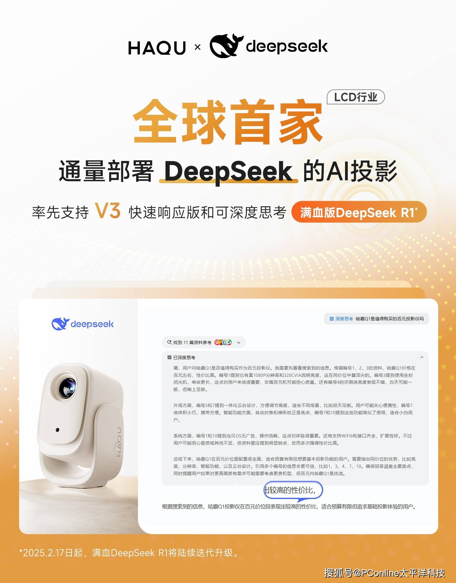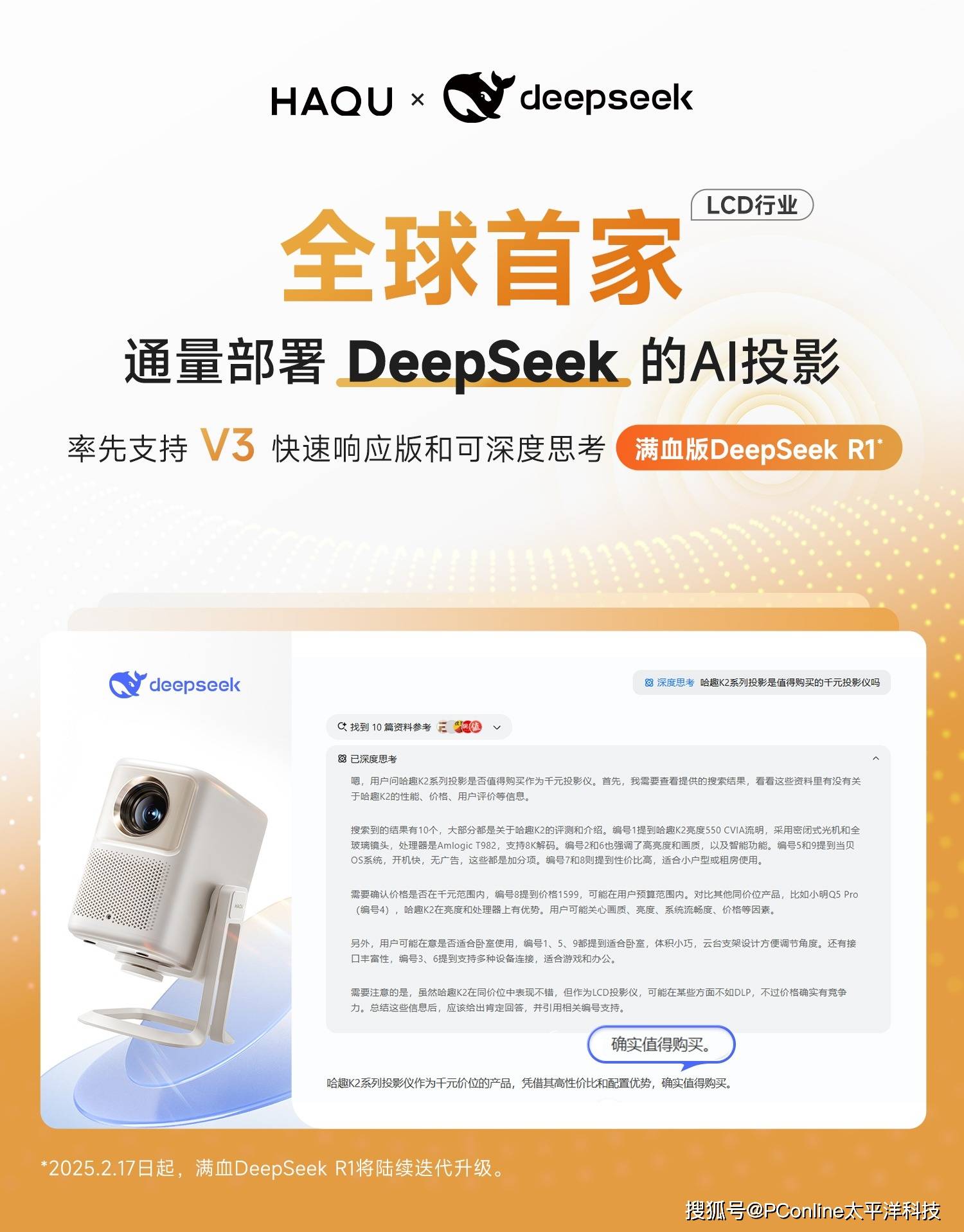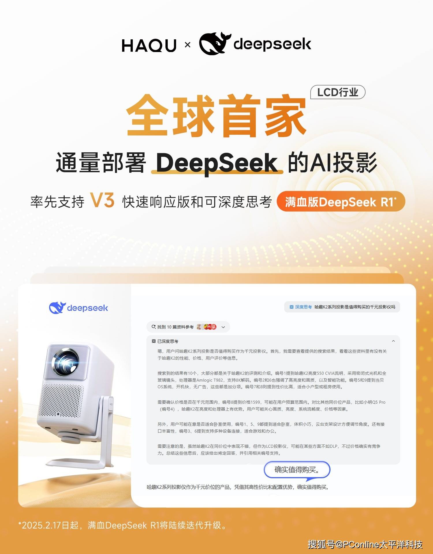 — LCD行业首家!哈趣投影正式接入DeepSeek!用户体验再升级 —