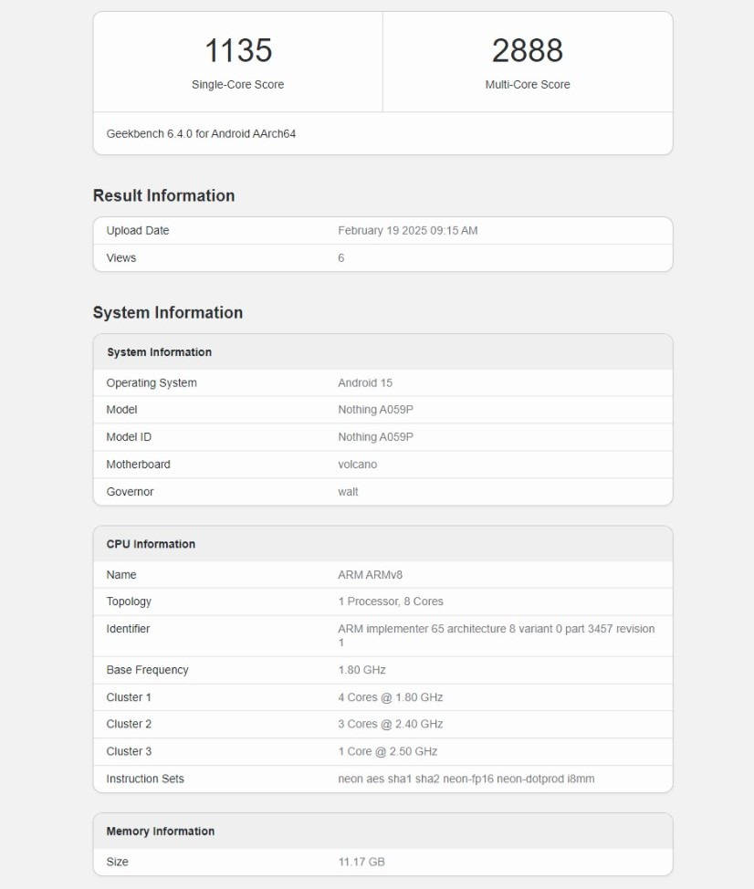 — 海外大火的Nothing品牌新机跑分曝光,将搭载骁龙7s Gen3芯片 —