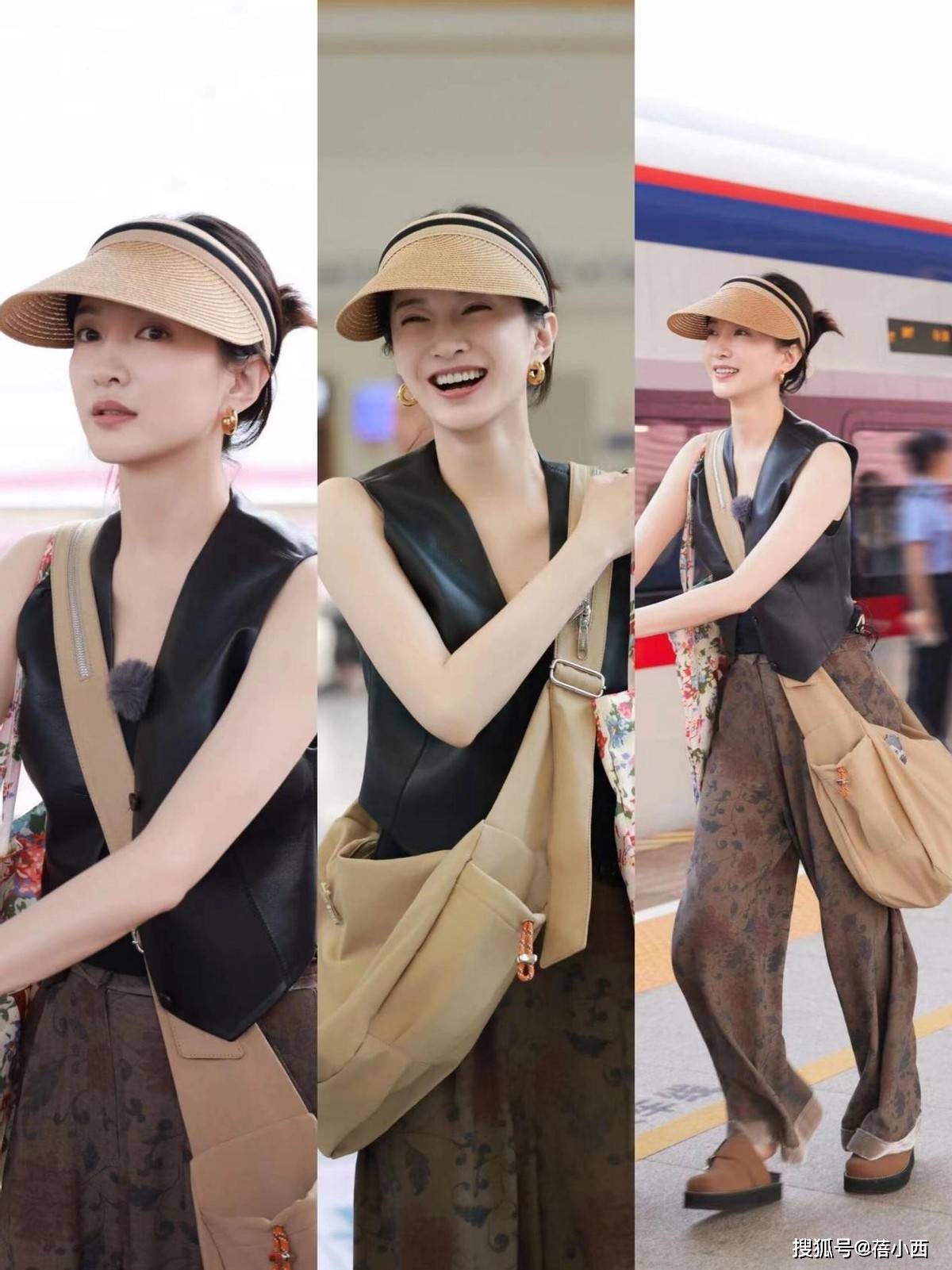 — 38岁“江疏影”带火了一种新穿法:皮马甲+大妈花裤,显瘦又洋气 —