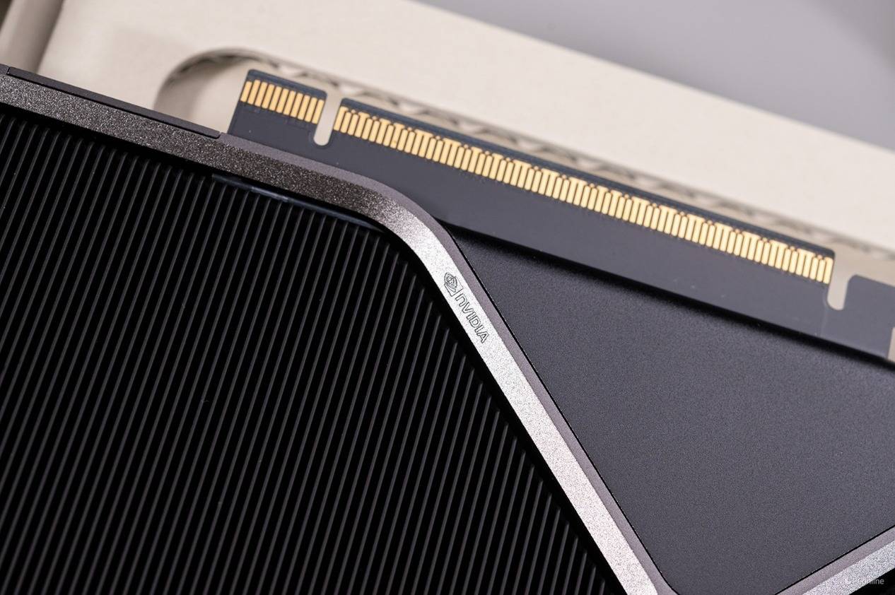 并且改回了如RTX 30系显卡时的斜插形式,这样不容易导致线材弯曲,从而也能降低烧显卡的风险。电源接口旁边则是标志性的“GEFORCE RTX“字样,进一步提升辨识度。