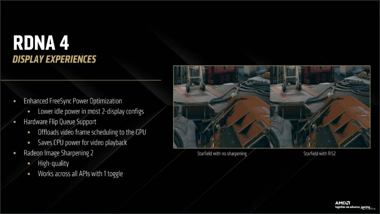 在视频编解码格式上,则继续支持H.264、H.265(HEVC)、AV1,比较可惜的是不支持H.266(VCC)格式,最高支持8K|80 FPS的编解码。显示体验也得到了改善,提供增强的FreeSync电源优化模式,能够显著降低显示器空闲时的功耗。同时显示引擎还能够在视频播放时节省 功耗以及提供更高质量的图像锐化功能。
