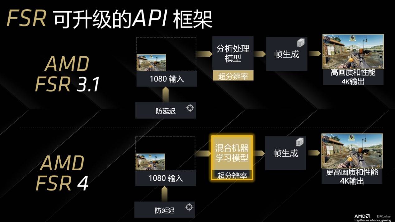 另外,得益于FSR 4这次一改传统的分析处理模型进行超分,采用基于AI的混合机器学习模型,因此其在性能还是画质都有极大改善。FSR 4还有一大更新就是FSR可升级的API架构,对于开发者而言,如果正在使用FSR 3.1 API接口,可以非常轻松地迁移到FSR 4,并且可以与现有的游戏内FSR 3.1高级帧生成、Anti-Lag 2低延迟相结合,大大降低开发成本。