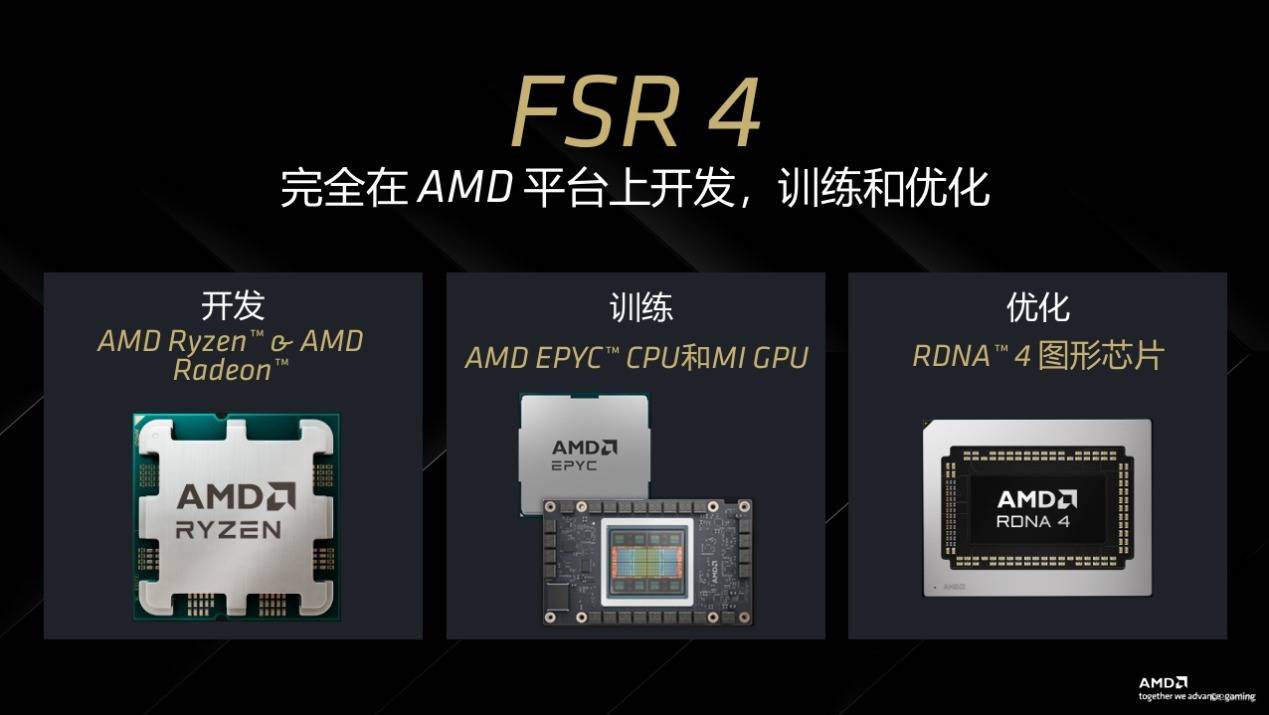 另外,根据AMD介绍,FSR 4的开发完全是在AMD平台上进行,其中,开发基于AMD锐龙处理器、AMD RADEON显卡。新的ML加速AMD FSR 4升级算法则是在AMD数据中心GPU加速器上使用高质量且真实的游戏数据进行训练,最终使用AMD RDNA™4架构的硬件加速FP8 Wave Matrix Multiply Accumulate (WMMA)功能来优化,确保最大的升级质量,同时还能提供显著的游戏性能提升。