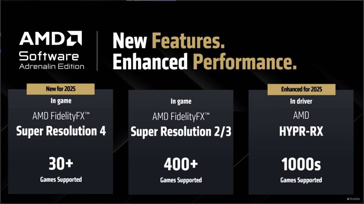 首先,在游戏支持方面有了重大突破,为了配合 FSR 4 游戏,目前已经成功支持 30 多款游戏,这无疑为游戏玩家们带来了极大的福利,让他们能够在游戏中享受到更流畅、更逼真的画面效果。同时,还进一步增强了驱动层面的 HYPR-RX 技术支持,其支持的游戏数量已经多达 1000 多款,这意味着更多的游戏能够借助这一技术提升性能和画质表现,为玩家带来更加出色的游戏体验。