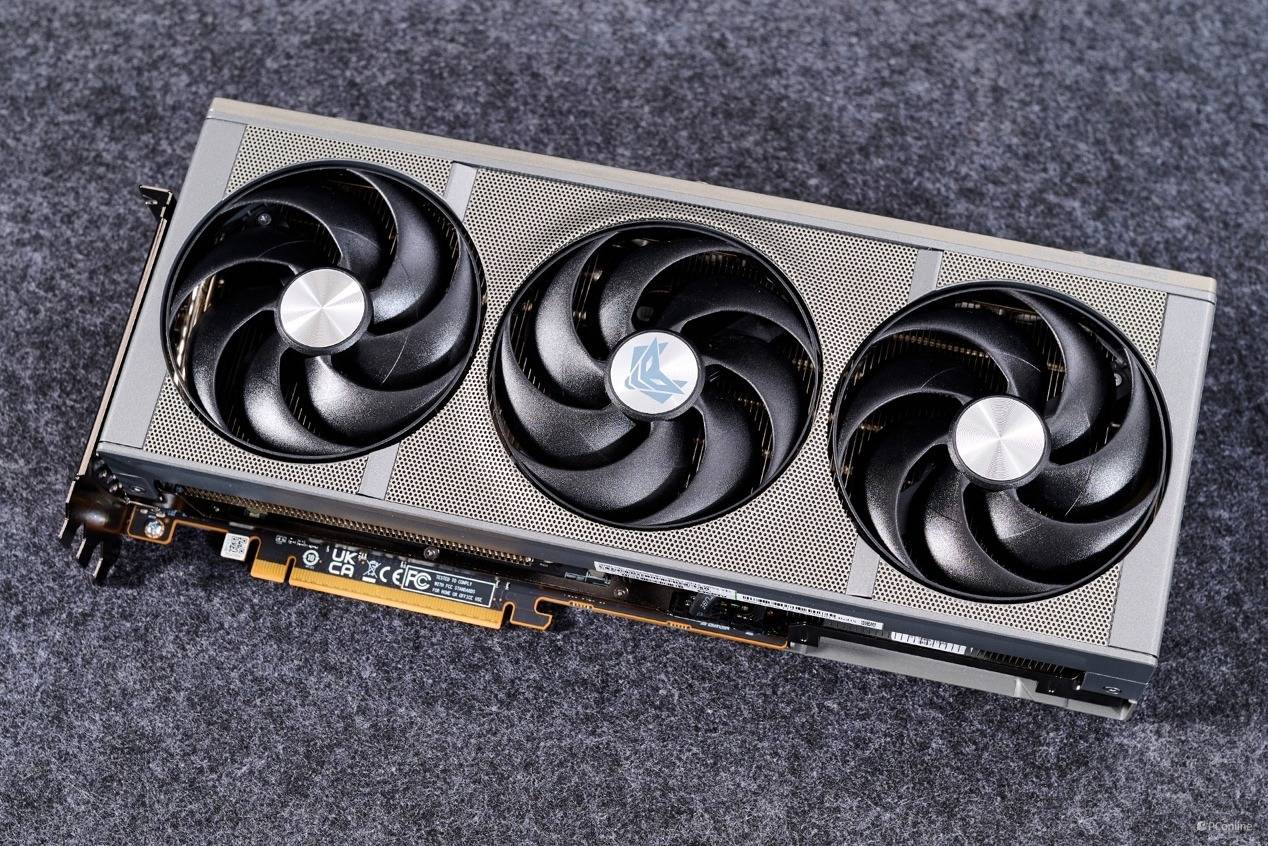 第一次上手蓝宝石NiTRO+氮动AMD RADEON RX 9070 XT显卡还是感觉非常有“份量”。显卡采用金属灰撞色设计,四四方方的造型硬朗大气。搭配正面三把黑色的散热风扇,科技感与个性并存,让人爱不释手。