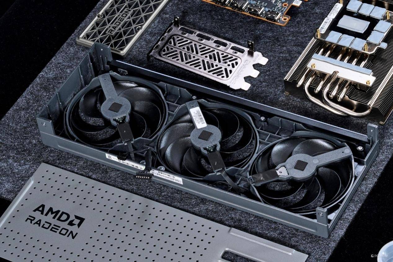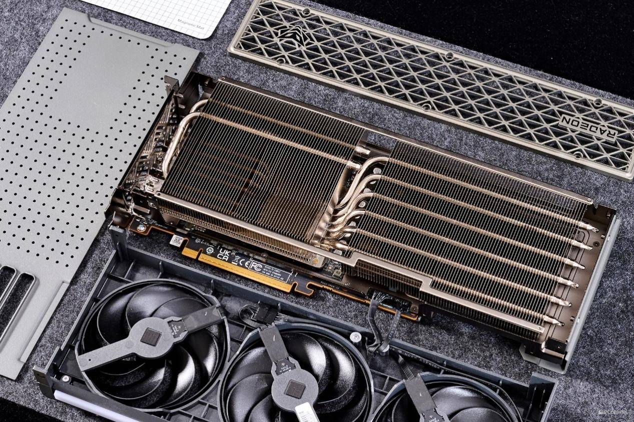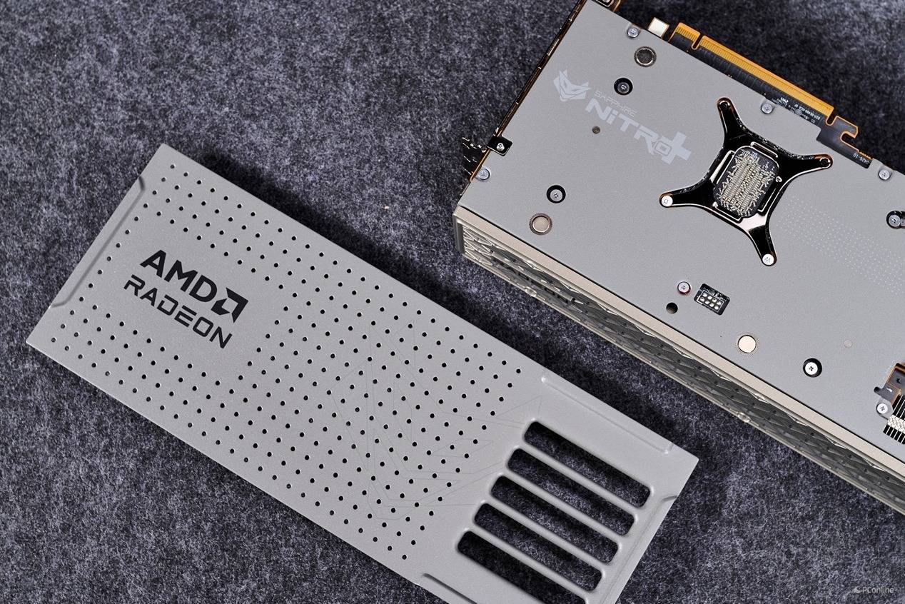 外观结束,接下来是显卡拆解部分。鉴于两款显卡内使用的都是Navi 48核心,因此拆解部分,我们以蓝宝石NiTRO+氮动AMD RADEON RX 9070 XT显卡为例。
