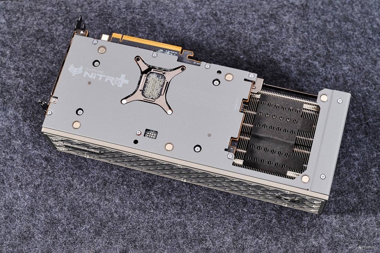 其实不然,这个显卡背部可藏了不少惊喜!例如,它应用了新一代NiTRO+氮动高度定制的磁吸快拆背板,想必你已经猜到这么设计的目的了。这样能为用户提供更整洁的机器外观以及更简单的显卡安装方式。