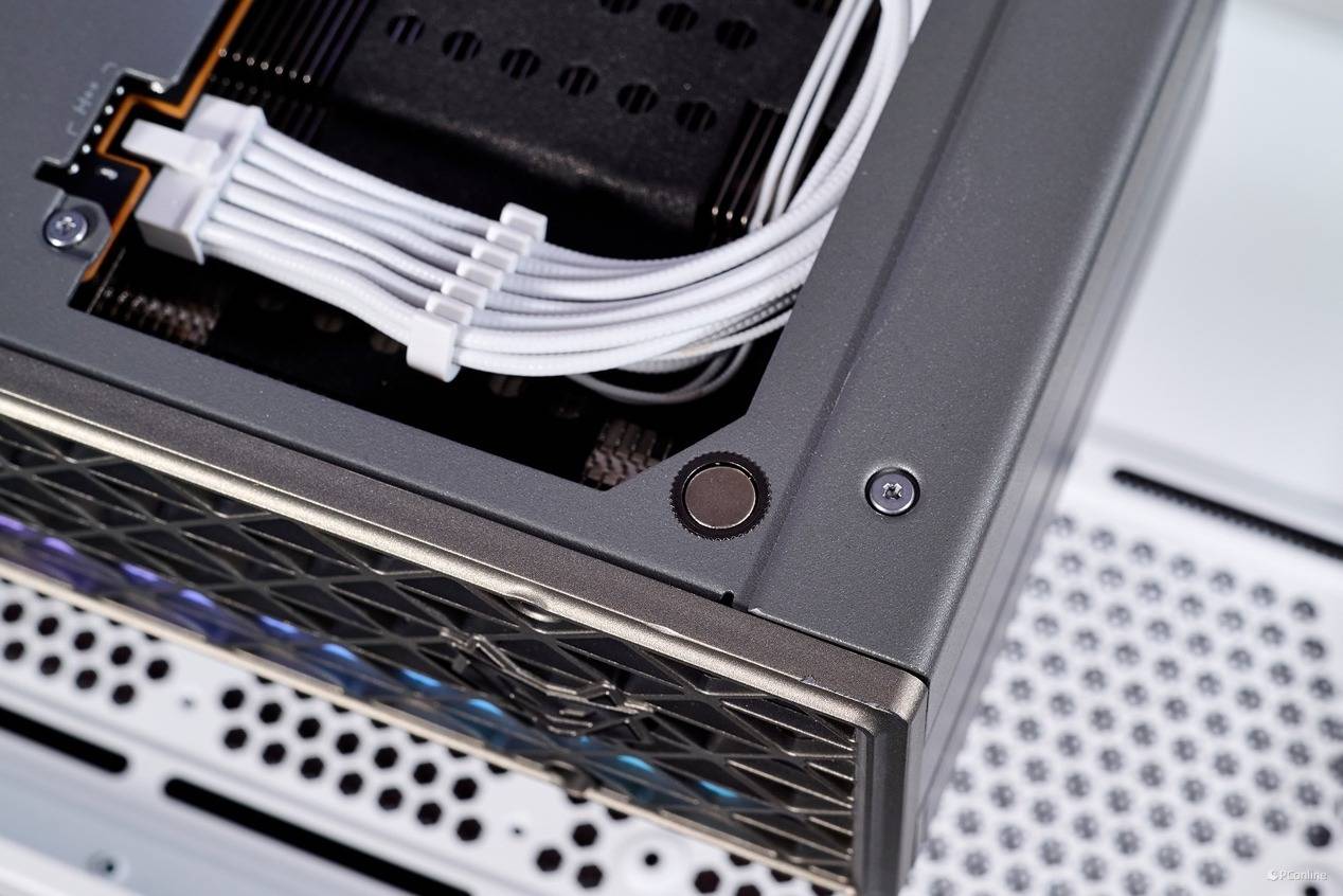 电源接口的右侧为ARGB接口,玩家通过5V 3PIN连接线可以与整机RGB光效联动,打造新一代灯光系统。