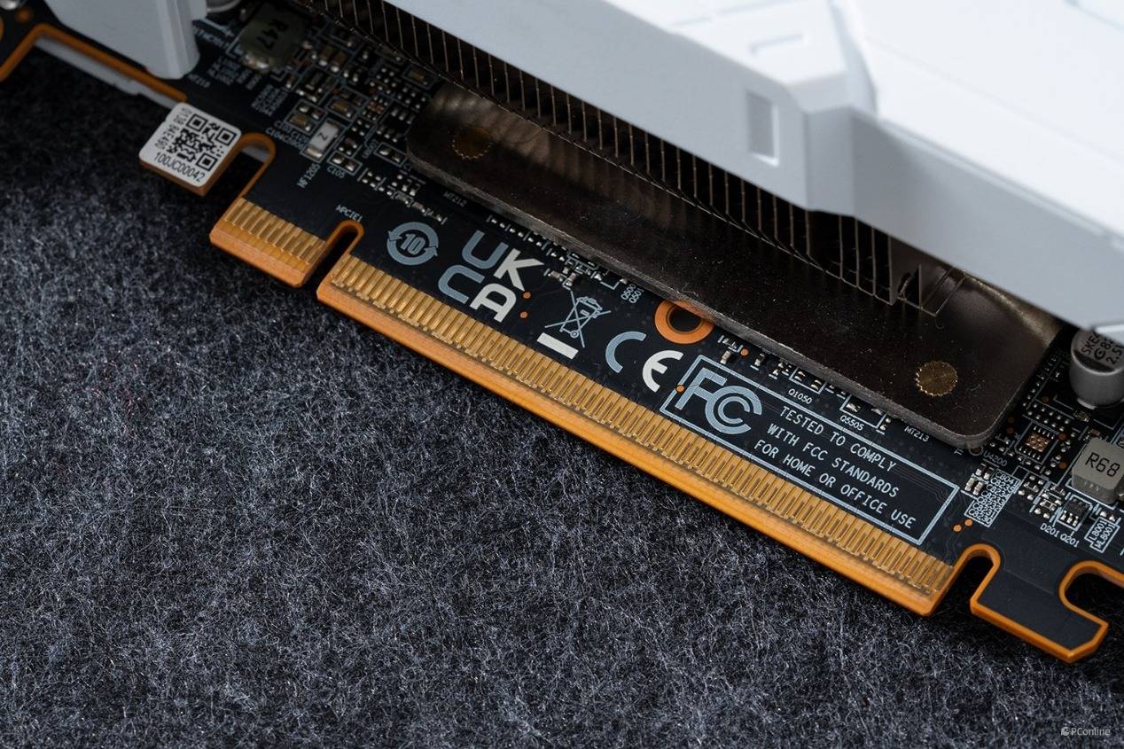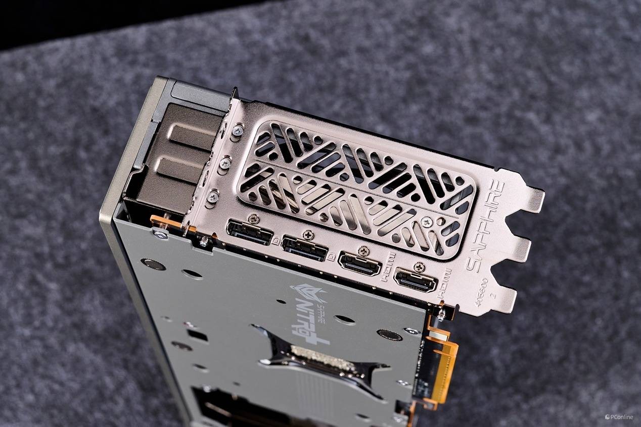 显卡底部则是金手指,并且这一代的PCIe接口还升级成为了5.0速率,这也是首次在AMD显卡上应用,能够带来更高的传输速率,金手指的形状和上一代的显卡也有了些微变化。