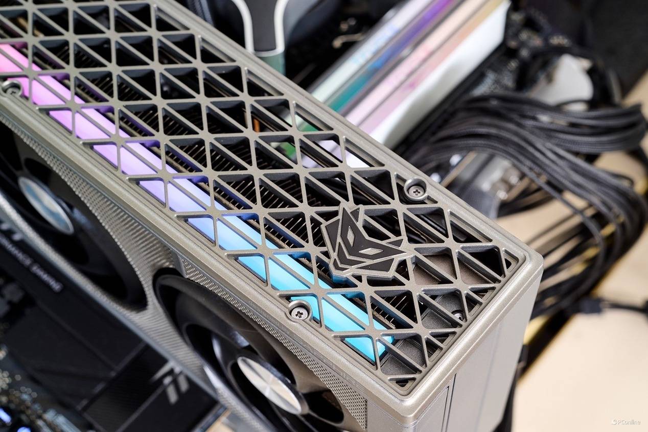 取下格栅就能看到上面提及的RGB灯带,不过个人还是比较喜欢上代XTX超白金系列的外露灯带设计,视觉上更有冲击力一些。