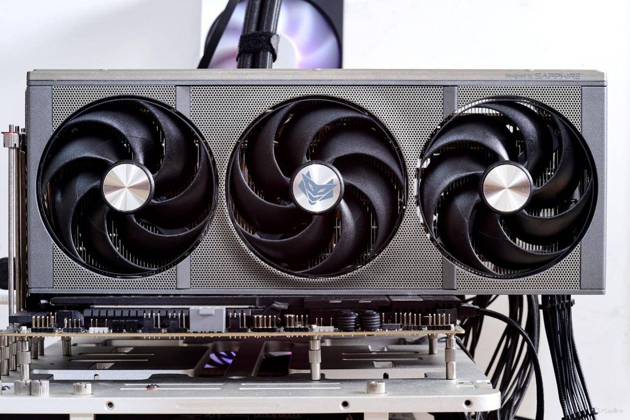 风扇部分为两大一小的新一代飞翼轴流扇,并且与上面的蓝宝石NiTRO+氮动AMD RADEON RX 9070 XT一样,采用两正一反,最大限度的提升风压,增大进风量,为显卡提供卓越的散热效能。