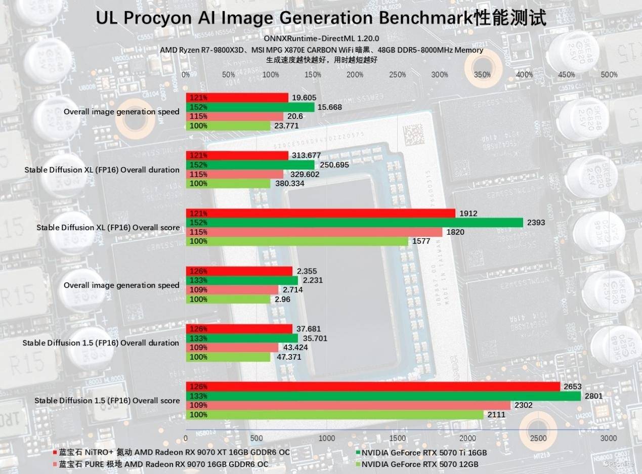 而对于内容创作者来说,RX 9070系列显卡同样具有很大的吸引力。其强大的图形处理能力可以加速视频编辑、3D建模等创意工作的流程,提高工作效率。并且,在处理大量数据和复杂计算任务时,RNDA 4架构的优势得以充分发挥,能够快速而准确地完成各项计算,为创作者节省宝贵的时间。即便是AI领域,得益于AMD的不断努力,现在这两款显卡的AI性能也有了长足的进步,满足基本的AI应用几乎没有问题。