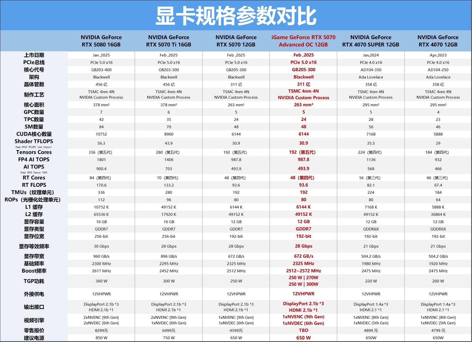 iGame GeForce RTX 5070 Advanced OC 12GB,规格介绍