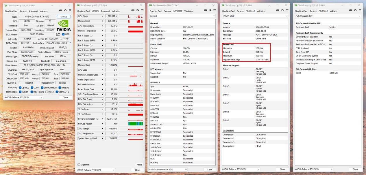 本文重点介绍的iGame RTX 5070 Advanced OC 12GB显卡的最大亮点在于其配备了双BIOS芯片设计。通过I/O挡板上的超频按键,用户可以轻松实现一键超频功能。详细来说,其标准BIOS的频率和TDP设置与公版FE保持一致。然而,在OC版本的BIOS中,iGame RTX 5070 Advanced OC 12GB的Boost频率高达2572MHz,其MAX TDP值更是达到了300W。这表明在相同的条件下,该显卡相较于公版FE能够提供更出色的性能表现,并且拥有更大的超频潜力。