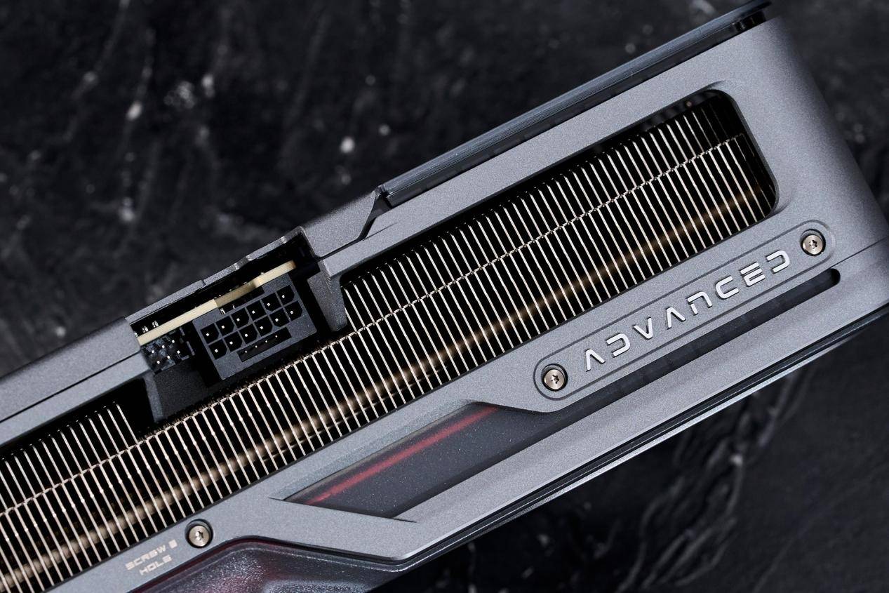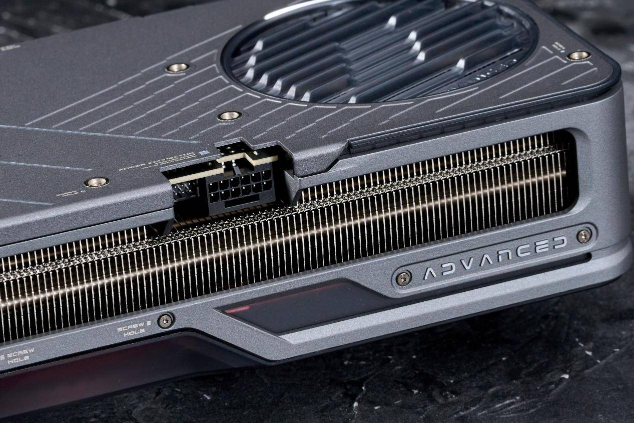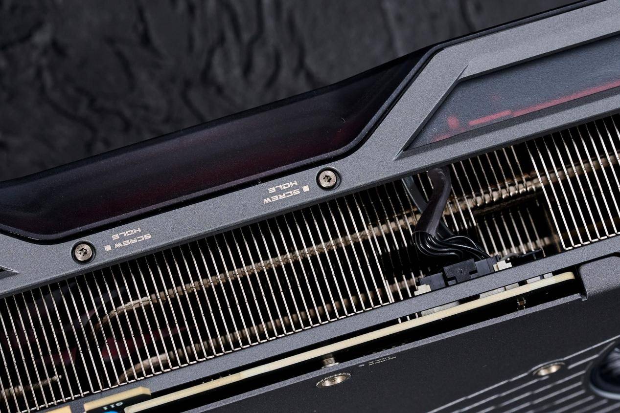 显卡采用12V-2x6供电接口的反向设计,使得连接过程更为便捷且确保了更高的安全性和稳定性。旁边的灯光控制线保留了对ARGB灯光的控制支持,让用户有着更丰富的个性化设置选项。