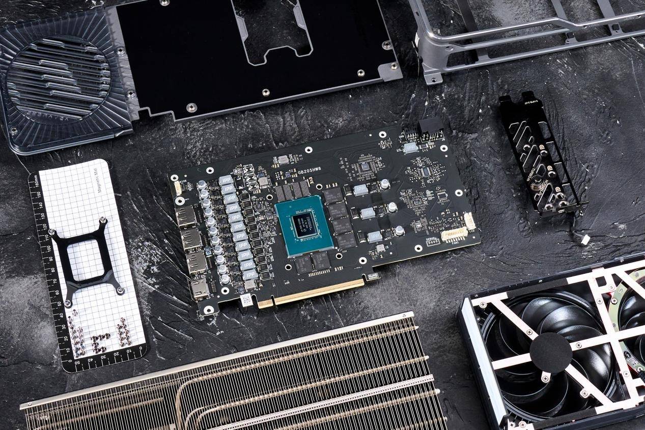 金属中框采用了全铝骨架设计,这种材质不仅轻巧,还具有极高的刚性和稳定性。全铝骨架能够有效支撑显卡的散热模组,确保在高负载运行时显卡不会因热量积累而变形或损坏