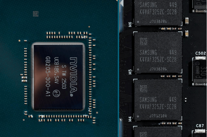 初见GB205-300-A1核心,给人的第一印象便是小巧。根据NVIDIA官方提供的数据,GB205-300-A1的核心面积仅为263mm²,相比之下,GB203-300-A1的核心面积为378mm²。两者在面积和晶体管数量上的差异恰好也是1/3。