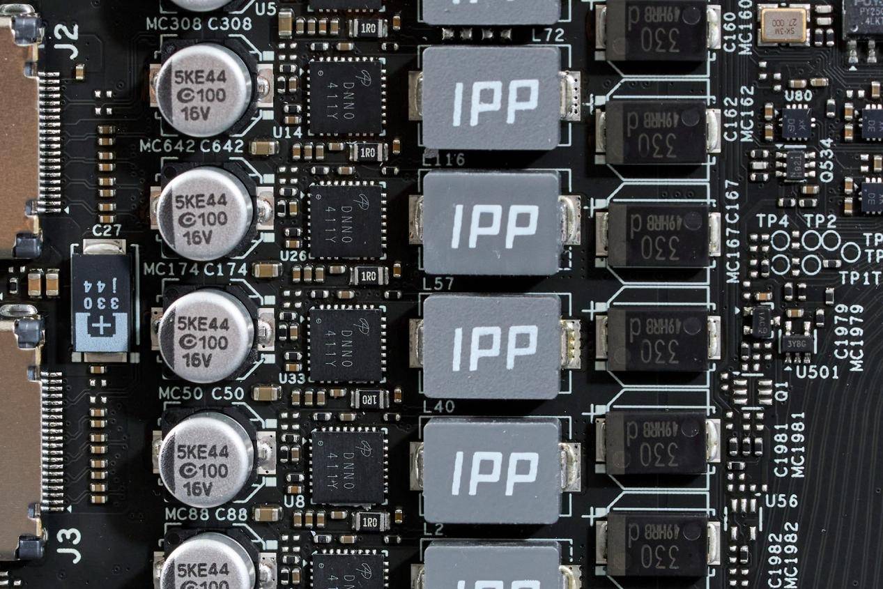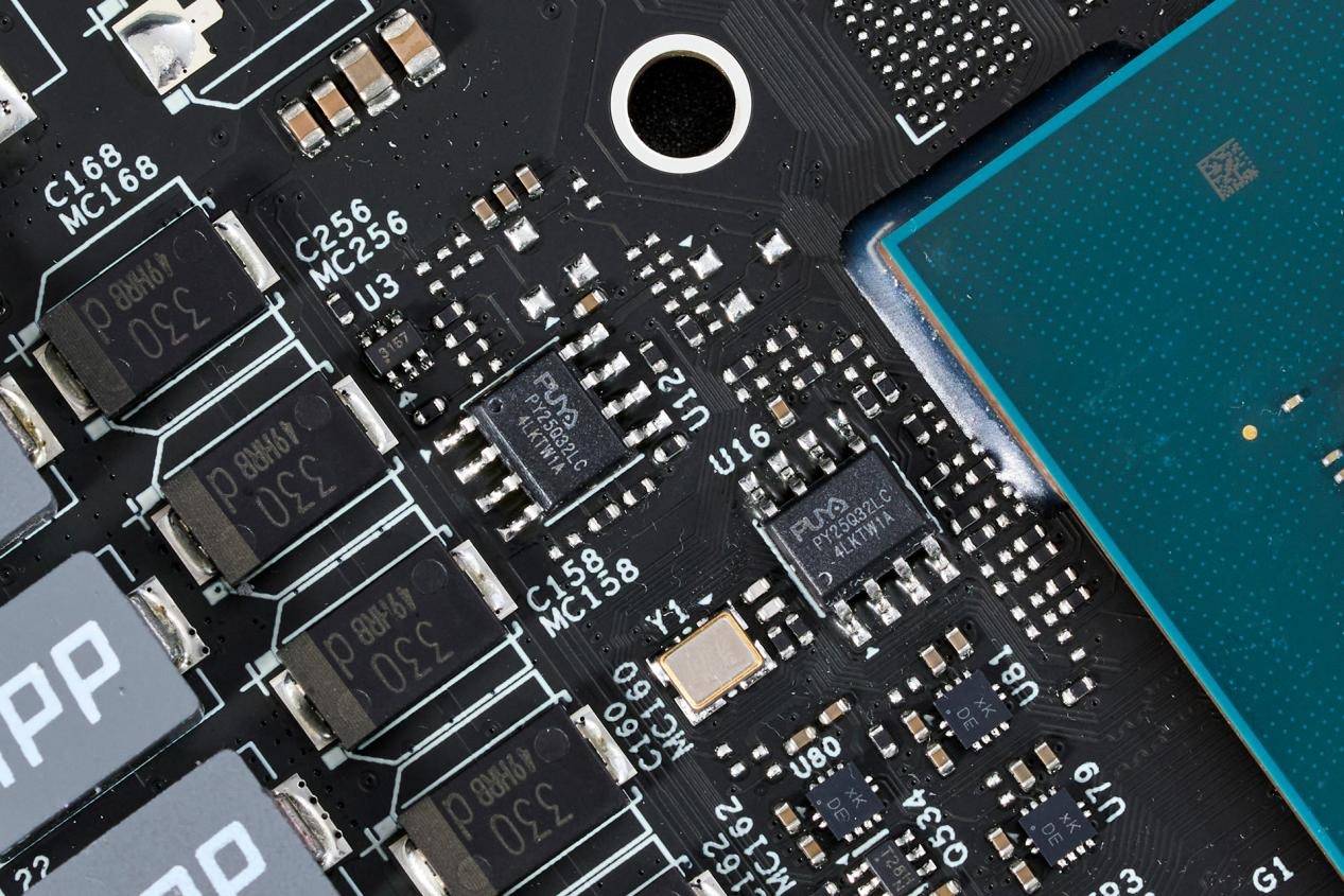 DrMos芯片同样是来自UPI的DNNO(丝印编码),具体型号为AOZ5310NQI-A,最大持续输出电流可达到60A。
