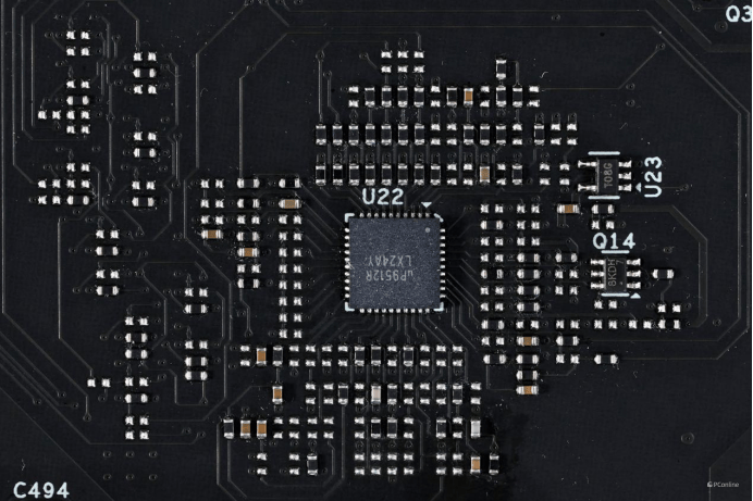 供电芯片为UPI uP9512R,一颗多相PWM供电控制芯片,经常出现于中高端显卡市场上。
