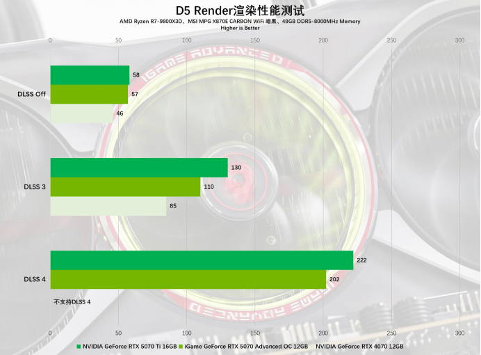 在实际测试中,iGame RTX 5070 Advanced OC 12GB显卡在启用DLSS 4后,渲染预览界面变得异常流畅,帧率稳定在202FPS左右。与未启用DLSS时的57 FPS相比,性能提升了超过四倍。即便是与RTX 40系列的DLSS 3相比,性能也毫不逊色,优势达到了50%以上。